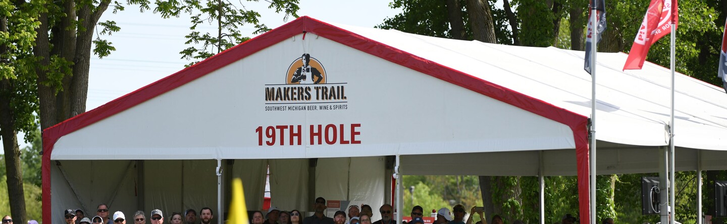The Makers Trail 19th Hole Pavilion offers an upgraded fan hospitality experience like no other, providing attendees with special access to a covered pavilion with comfortable seating, views of play, TVs to keep an eye on the action and a relaxed atmosphere to enjoy specially crafted beverages. With one of the best seats on the course behind the 17th Green, guests will be able to witness Championship moments on this closing hole. The 2024 Championship will feature more Makers than ever before at Harbor Shores. The Makers Trail 19th Hole is sponsored by the Southwest Michigan Tourist Council.